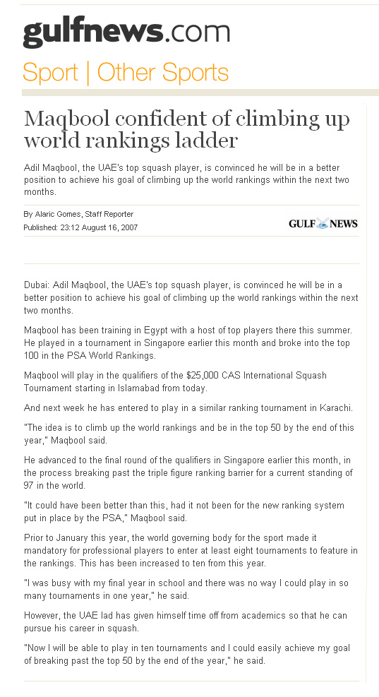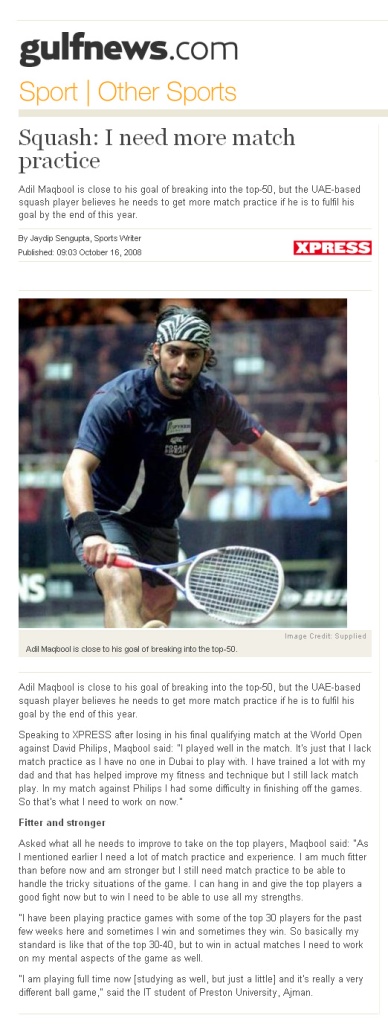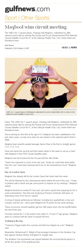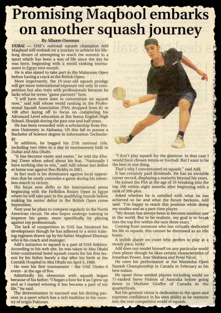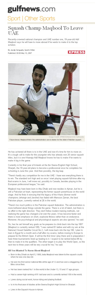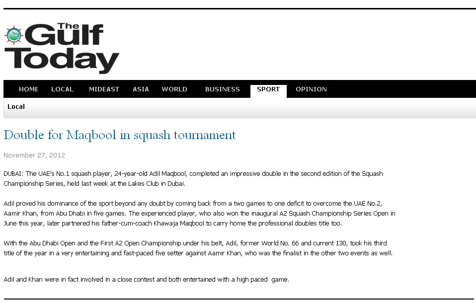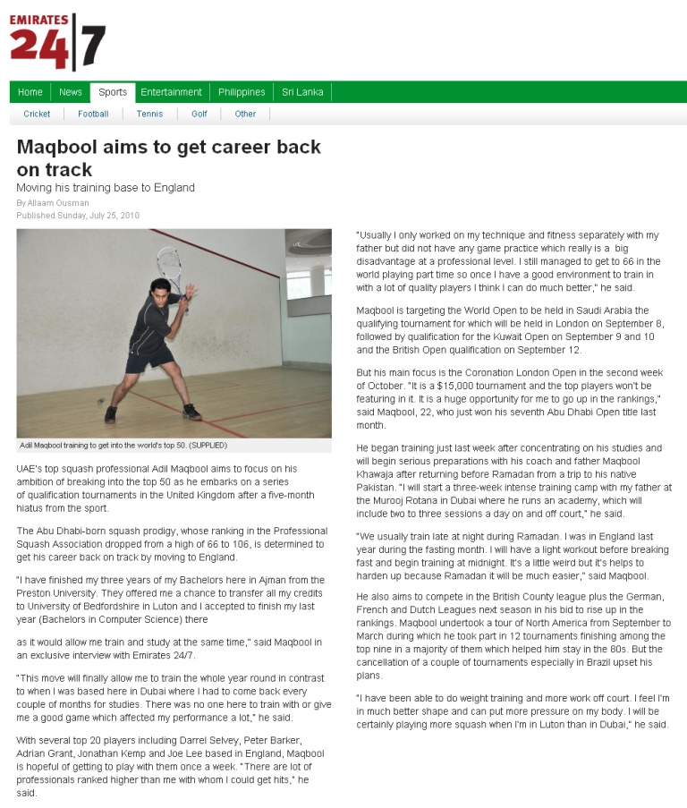 ADIL MAQBOOL: UAE'S NO1 SQUASH STAR HAS AN EYE ON 2020 OLYMPICS