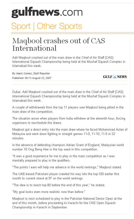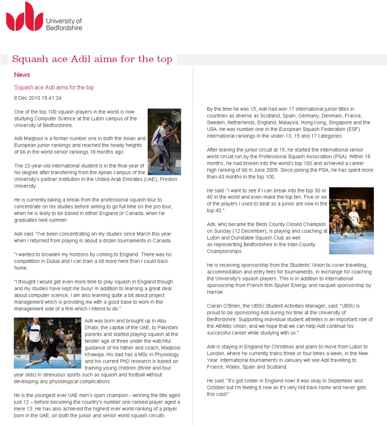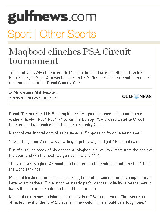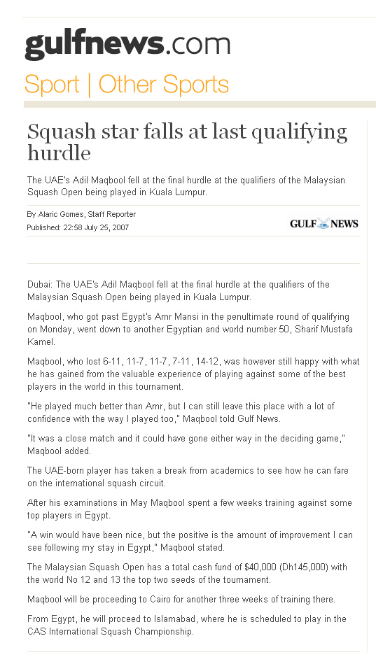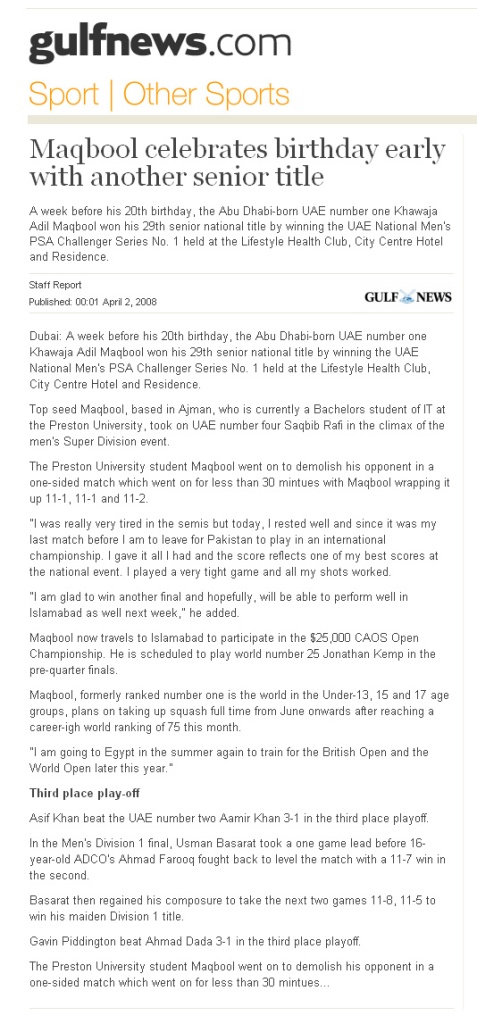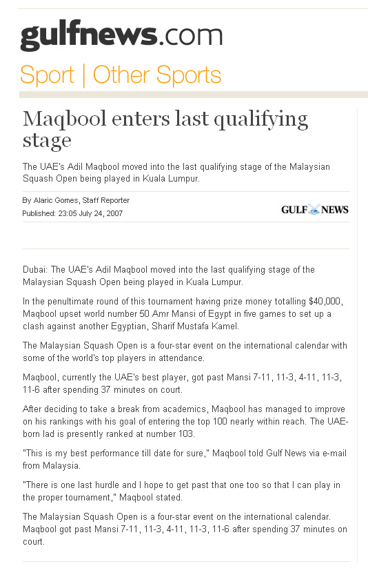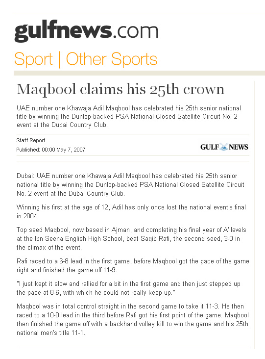 ADIL MAQBOOL: UAE'S NO1 SQUASH STAR HAS AN EYE ON 2020 OLYMPICS